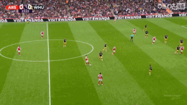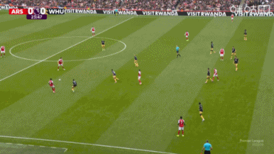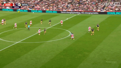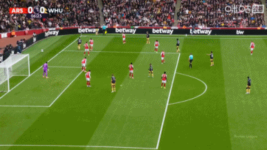 A Trong phút thứ 24, Rice đã vượt qua một đường chuyền dài từ hàng tiền vệ, Saka bước vào khu vực hình phạt và ghi bàn. Trọng tài nhanh chóng báo hiệu rằng mục tiêu việt vị của Saka là không hợp lệ! ↓
