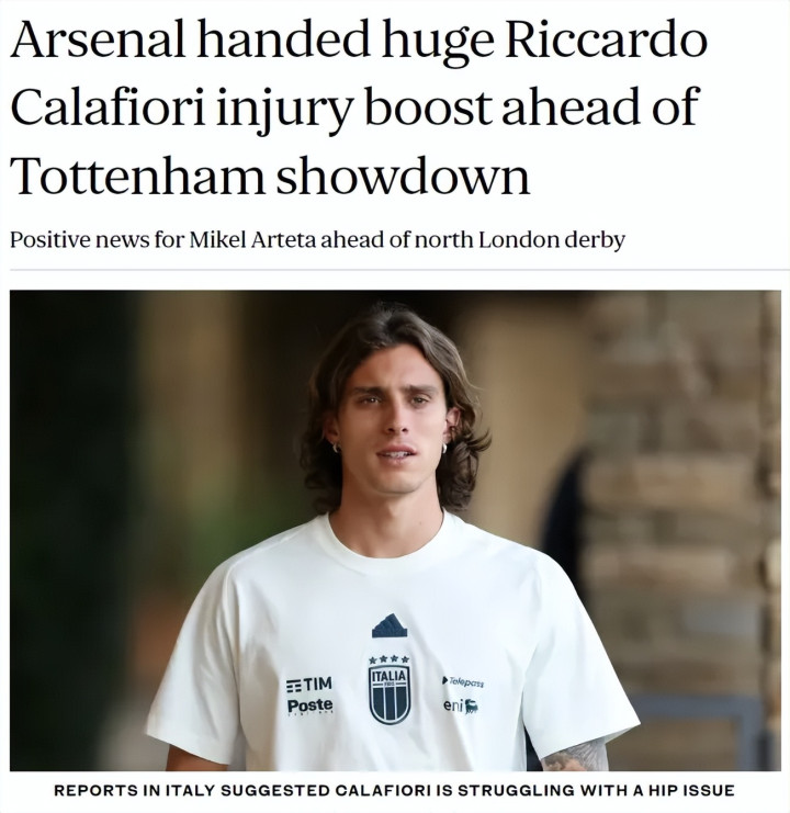 Phóng viên SC của London Evening Standard đưa tin rằng Ý hy vọng Calafioli có thể bắt kịp trận đấu với Na Uy vào Chủ nhật, điều này tốt cho Arsenal.
