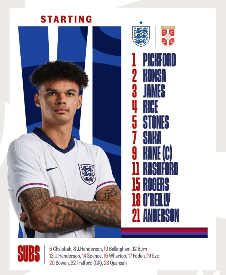 Saka và Rice bắt đầu trận đấu vòng loại World Cup của Anh với Serbia.